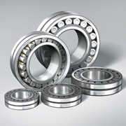 調(diào)心滾子軸承在有二條滾道的內(nèi)圈和滾道為球面的外圈之間,裝配有鼓形滾子的軸承。 外圈滾道面的曲率中心與軸承中心一致,所以具有與自動調(diào)心球軸承同樣的調(diào)心功能。在軸、外殼出現(xiàn)撓曲時,可以自動調(diào)整,不增加軸承負擔。調(diào)心滾子軸承可以 承受徑向負荷及二個方向的軸向負荷。徑向負荷能力大,適用于有重負荷、沖擊負荷的情況。內(nèi)圈內(nèi)徑是錐孔的軸承,可直接安裝?;蚴褂镁o定套、拆卸筒安裝在圓 柱軸上。保持架使用鋼板沖壓保持架、聚酰胺成形保持架及銅合金車制保持架。 調(diào)心滾子軸承可承受較大的徑向載荷,同時也能承受一定的軸向載荷。該類軸承外圈滾道是球面形,故具有調(diào)心性能,當軸受力彎曲或傾斜而使內(nèi)圈中心線與外圈中心線相對傾斜不超過1°~2.5°時,軸承仍能工作。調(diào)心滾子軸承內(nèi)孔有圓柱形和圓錐形兩種。圓錐形內(nèi)孔的錐度為1:1 2或1:30。為了加強軸承的潤滑性能,在軸承外圈上加工環(huán)形油槽和三個均布的油孔。調(diào)心滾子軸承適用于承受重載荷與沖擊載荷,廣泛應用于冶金、軋機、礦山、石油、造紙、水泥、榨糖等行業(yè)。